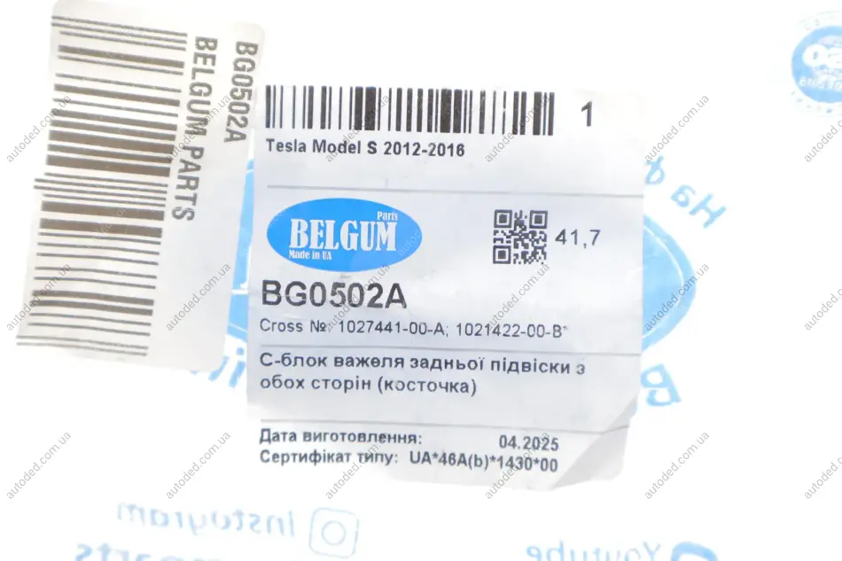 Сайлентблок важеля задньої підвіски 41,7 mm з обох сторін (косточка) Tesla Model S 2012-2016 BELGUM PARTS BG0502A