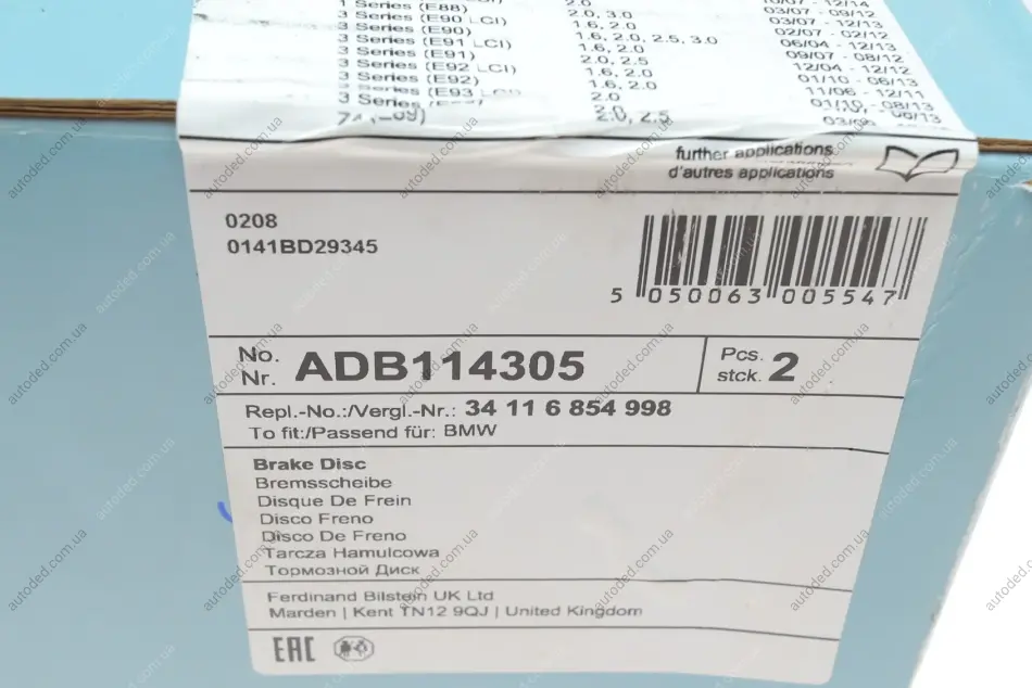 Диск гальмівний(к-т) BLUE PRINT ADB114305