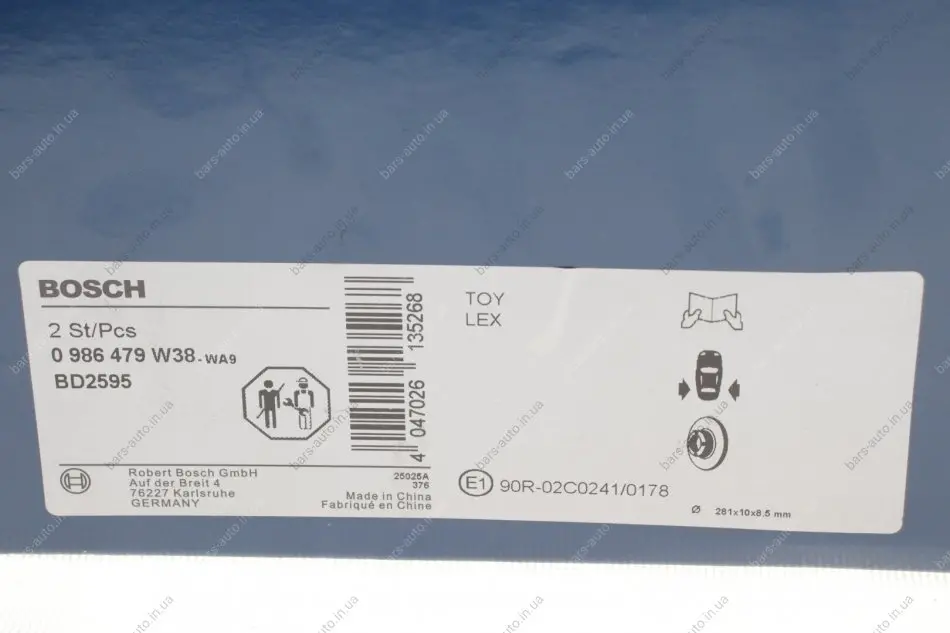 Диск гальмівний BOSCH 0 986 479 W38