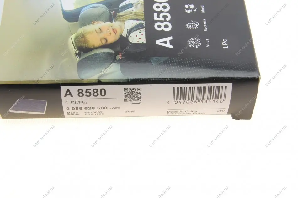 Фільтр салону BMW 3 (G20/G20)/X3 (G01/F97)/X4 (G02/F98) 17- (вугільний/антиалергенний/антибактеріальний) BOSCH 0 986 628 580