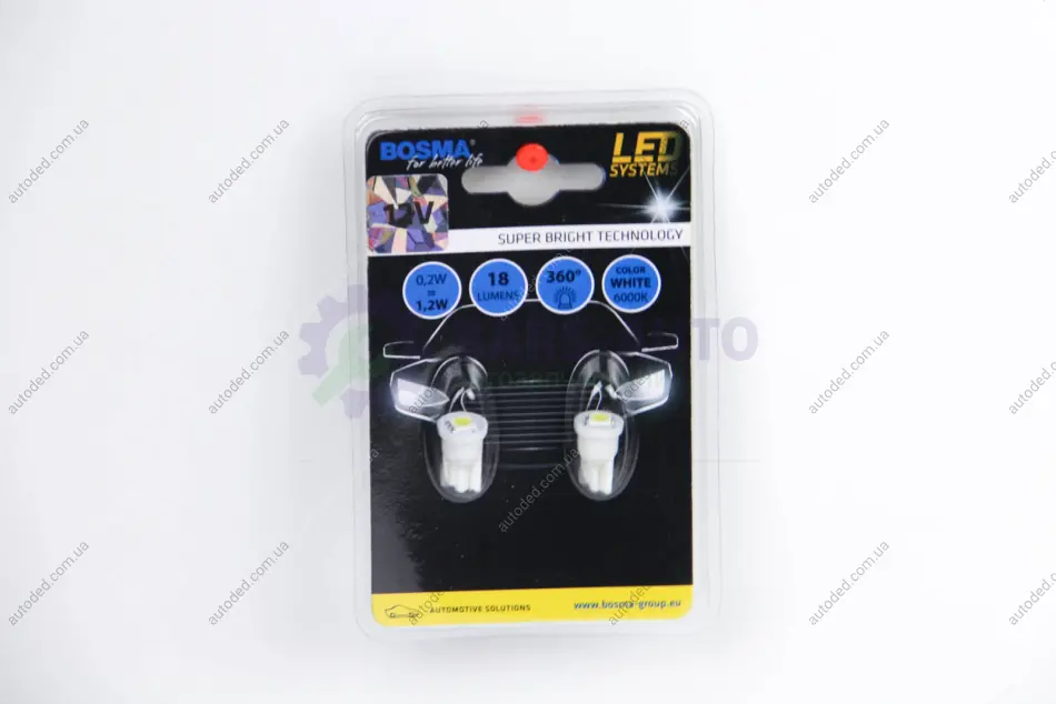 Автолампа T10 LED 12V 1xSMD 5050 LED WHITE (2 шт) Bosma 3970
