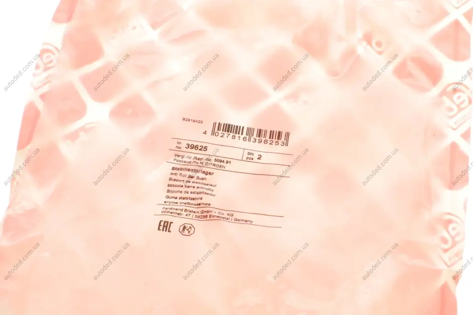 Втулка стабилизатора (переднего) Citroen C3 1.1-1.6 16V HDi 02-(d=19mm) FEBI BILSTEIN 39625