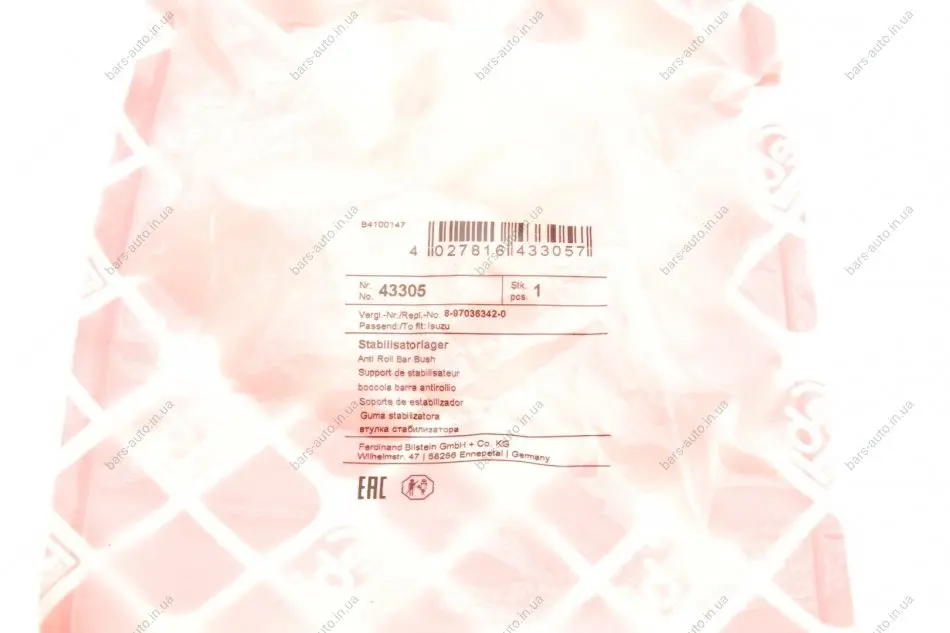 Выбирая втулку стабилизатора 43305FEBI BILSTEIN, вы обеспечиваете своему автомобилю: