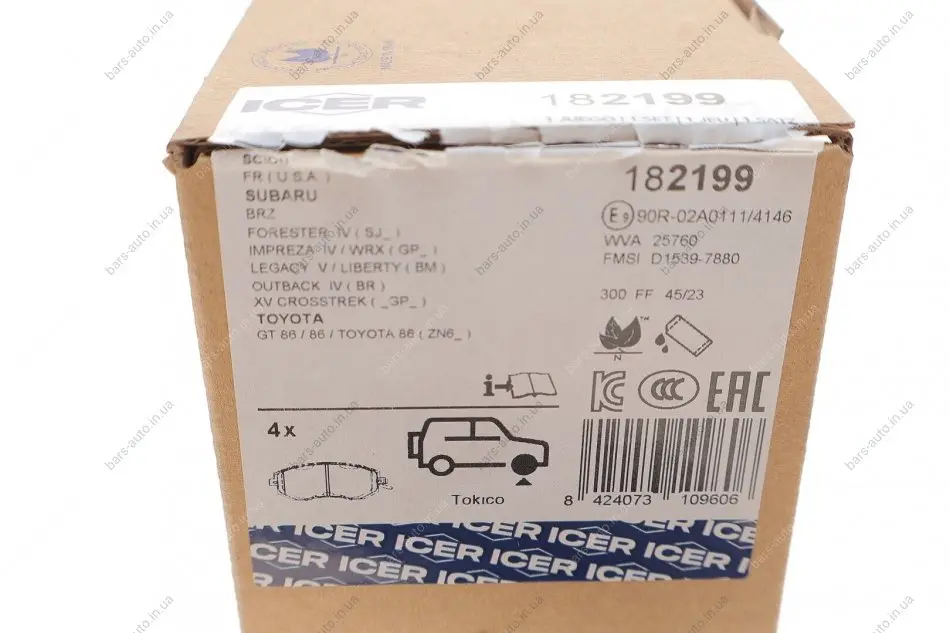 Колодки гальмівні (передні) Toyota GT 86 12-/Subaru Forester/Impreza/Legace V/Outback/XV 07- ICER 182199