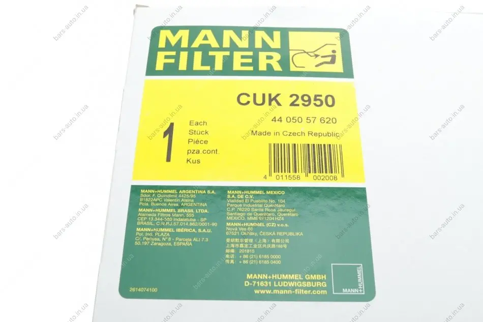 Фільтр салону -FILTER MANN CUK 2950