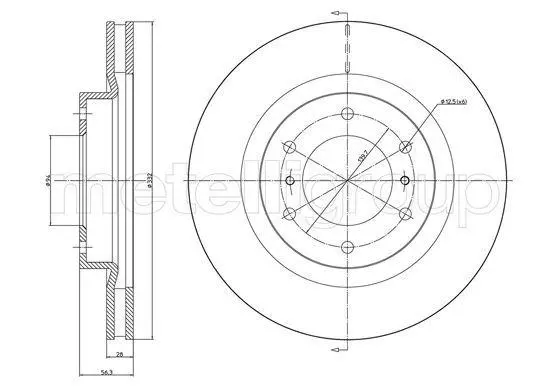 Диск гальмівний (передній) Mitsubishi Pajero IV 06- (332x28) (з вениляцією) (з покриттям) Metelli 23-1662C