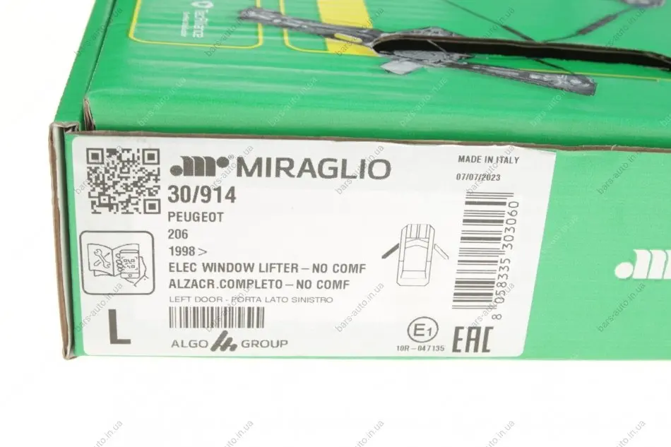 Стеклоподъемник (передний) Peugeot 206 98-07 (L) (электро) (с моторчиком) MIRAGLIO 30/914