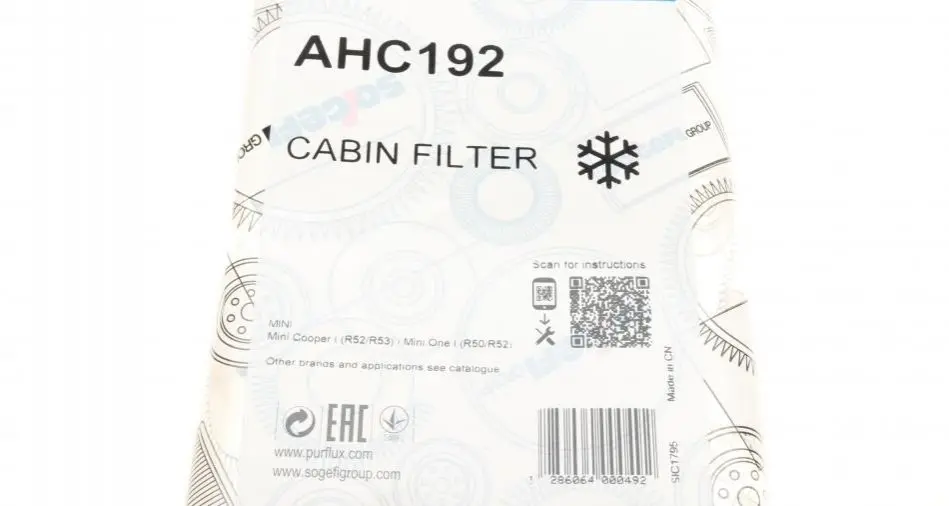 Фильтр салона Mini Mini 01-(угольный) Purflux AHC192