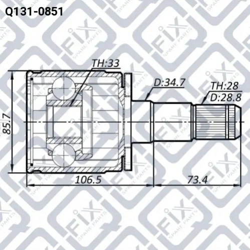 Внутреннее зубчатое соединение со стороны дифференциала: 33