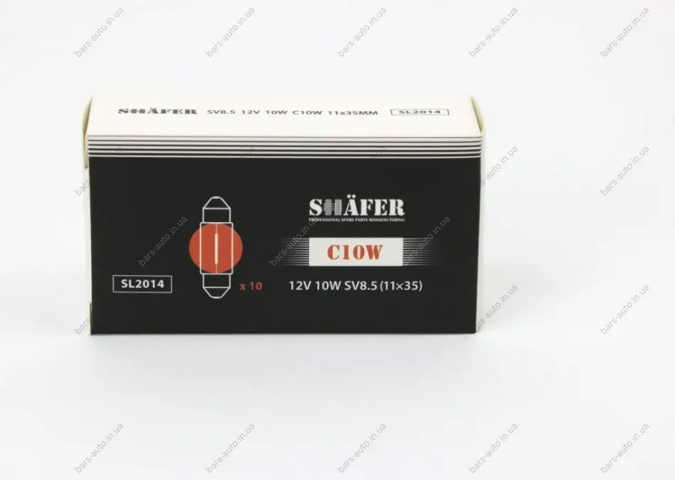 Лампа накалювання 12V 10W C10W SV8.5 (11×35) (картонна упаковка по 10шт) SHAFER SL2014
