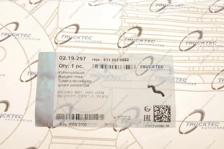 Патрубок системи охолодження AUTOMOTIVE TRUCKTEC 02.19.297