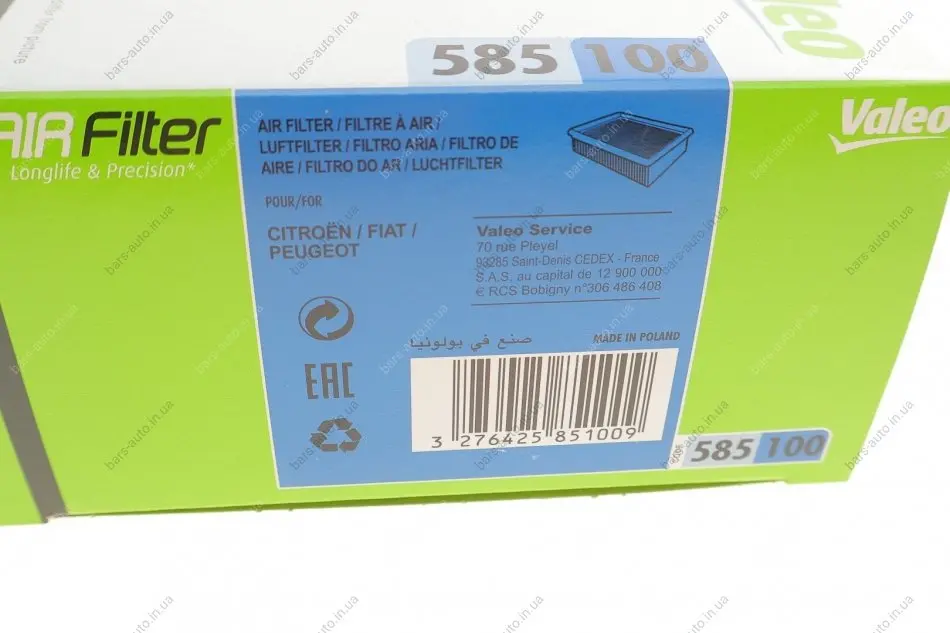 Фильтр воздушный двигуна VALEO 585100