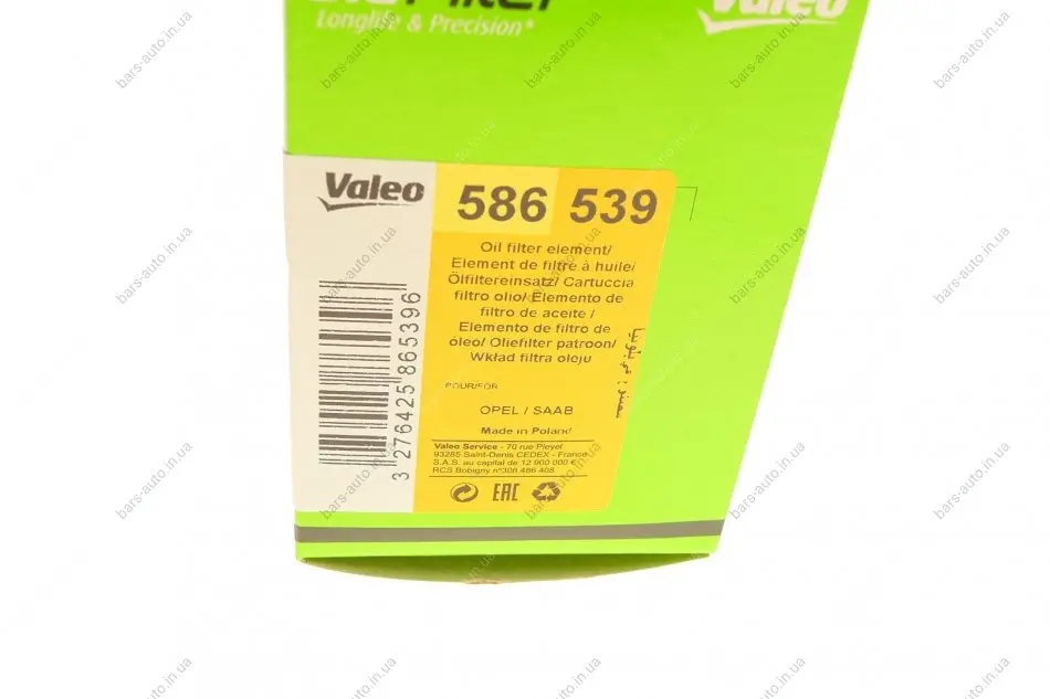 Масляный фильтр (патрон) VALEO 586539