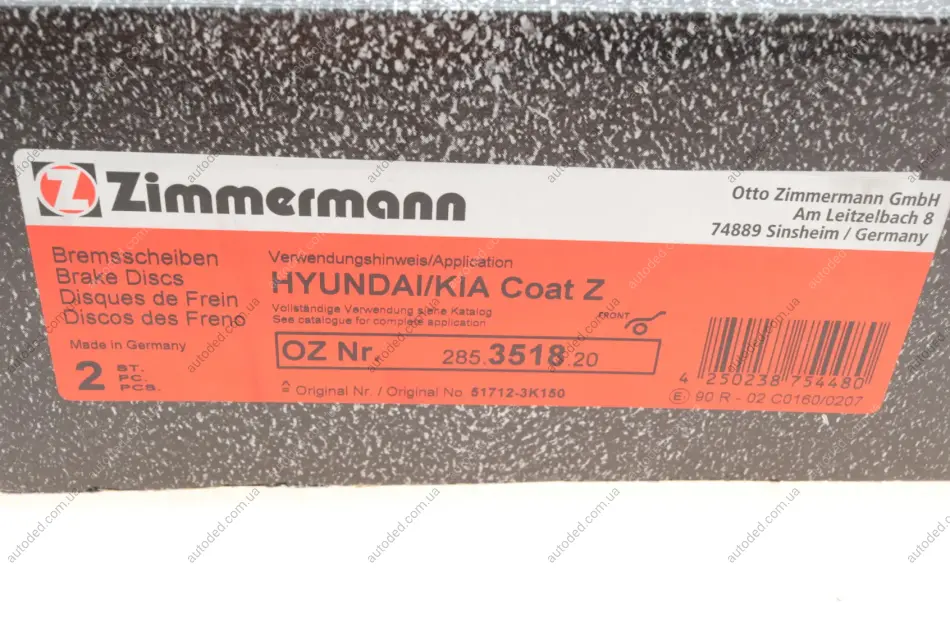 Диск гальмівний ZIMMERMANN 285.3518.20
