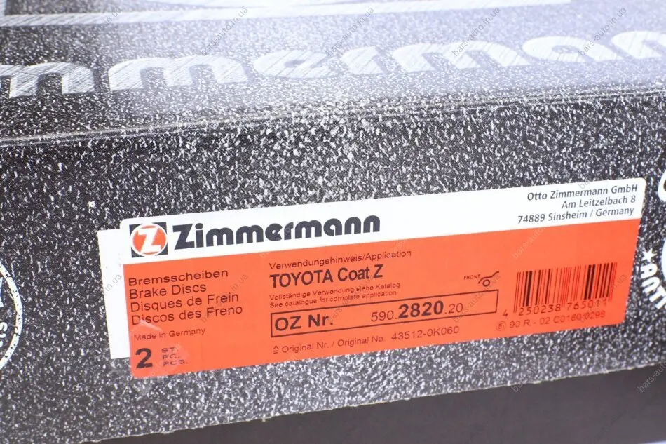 Диск гальмівний (передній) Toyota Hilux VII 05-15 (297x25) (з покриттям) (вент.) ZIMMERMANN 590.2820.20