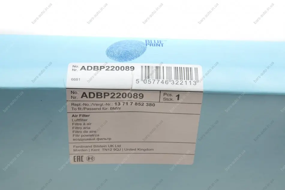 Фільтр повітряний BMW M5 (G30) 17- (S63) (R) BLUE PRINT ADBP220089