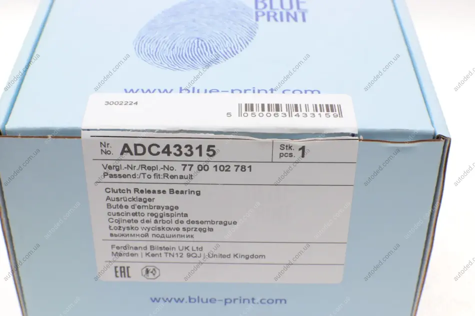 Підшипник вижимний Renault Kangoo 1.5/1.9dCi 01- BLUE PRINT ADC43315