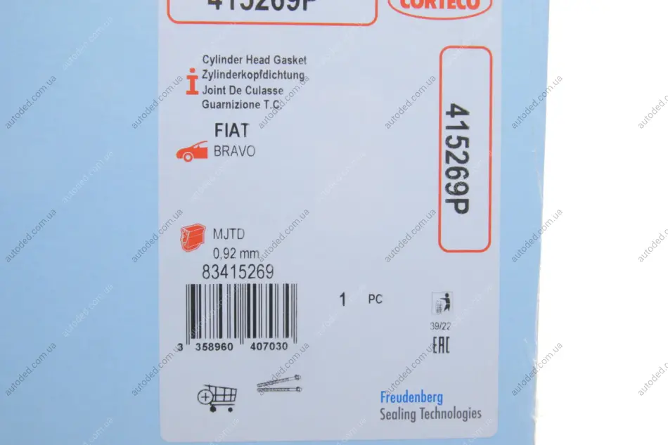 Прокладка ГБЦ Fiat Doblo 1.6D Multijet 10- (1 метка) (0.92mm) CORTECO 415269P