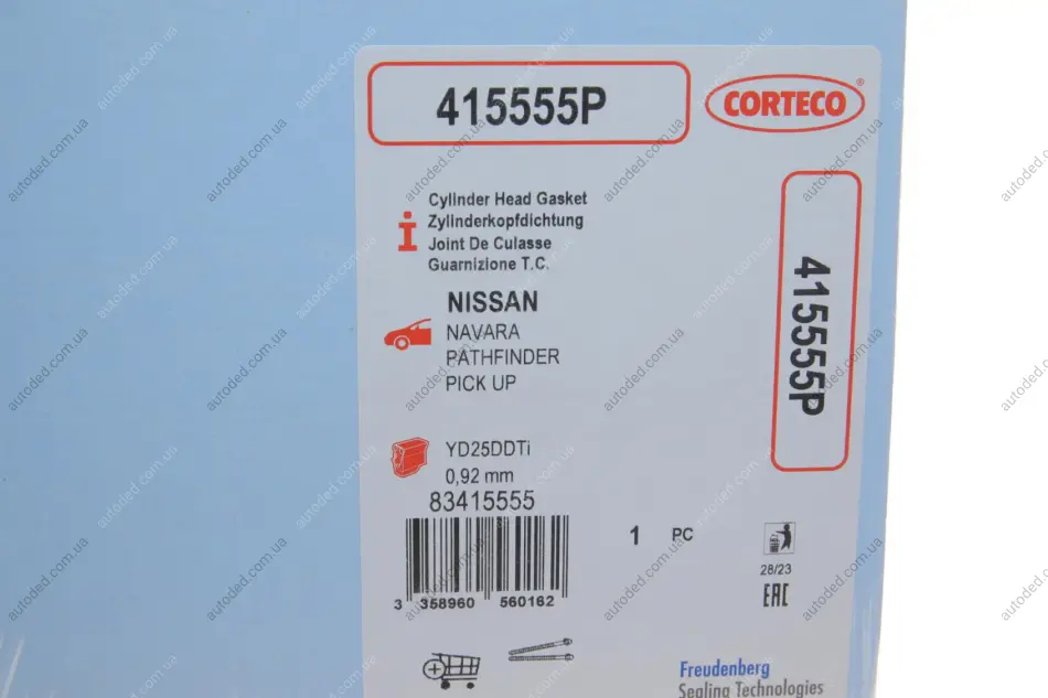 Прокладка ГБЦ Nissan Pathfinder 2.5 dCi 05- (0.92mm) (2 мітки) CORTECO 415555PОсобливості та переваги