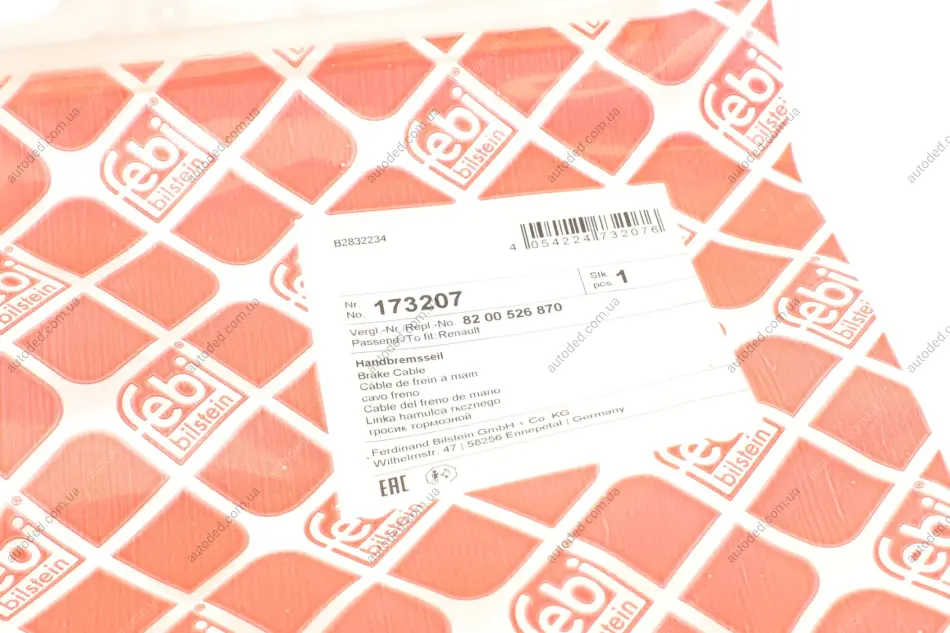 Трос ручника (задній) Renault Kangoo 08-/MB Citan 12- (2014mm) FEBI BILSTEIN 173207