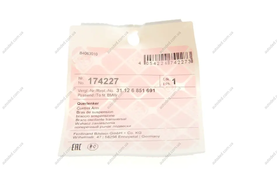 Важіль підвіски з сайлентблоком, кульовою опорою і гайкою FEBI BILSTEIN 174227