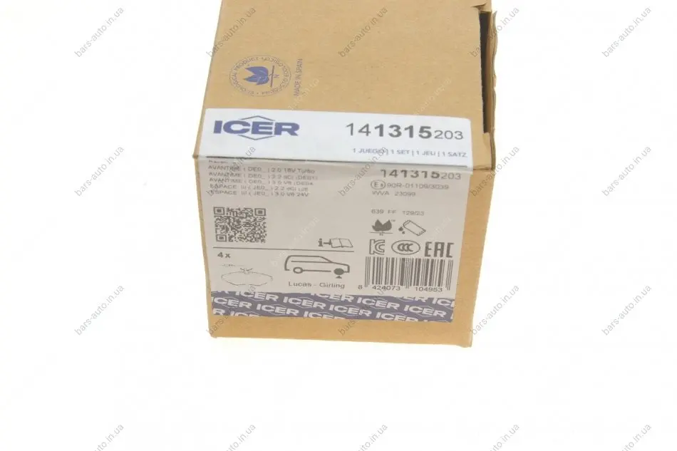 Колодки гальмівні (передні) Renault Espace III 98-02 (+датчики) ICER 141315-203