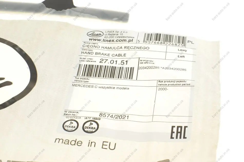 Трос ручника (задній) (L) MB C-class (W203) 00-08 (925/805mm) LINEX 27.01.51