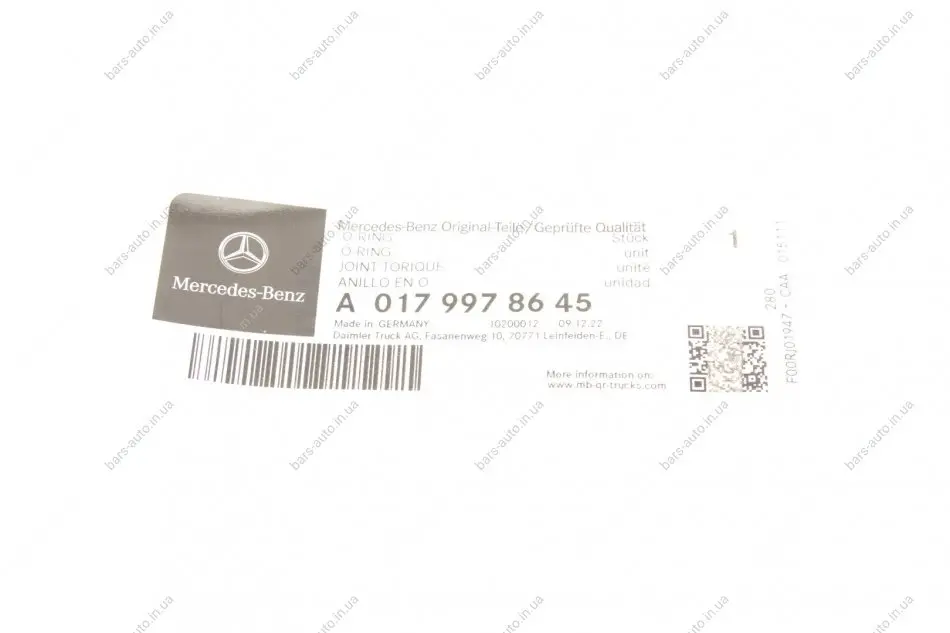 Прокладка ПНВТ ущільнююча MB Arocs OM 470 (13x17x2) кільце (Common rail) MERCEDES MERCEDES-BENZ 0179978645
