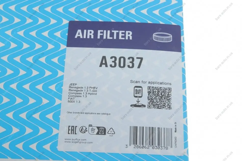 Фільтр повітряний Jeep Compass 1.3/Hybrid 20-/Renegade 1.3T-GDi/Fiat 500X 1.3GSE 18-/Tipo 1.5Hybr.22- Purflux A3037