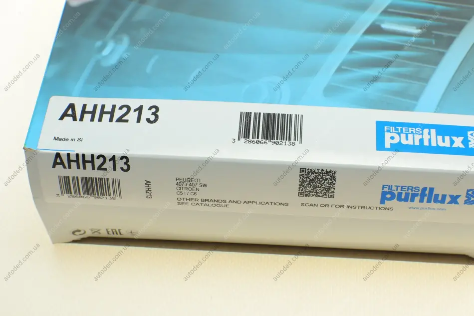 Фільтр салону Citroen C5/C6/Peugeot 407 04- (антиалергенний, захист від вірусів) CabinHepa+ Purflux AHH213