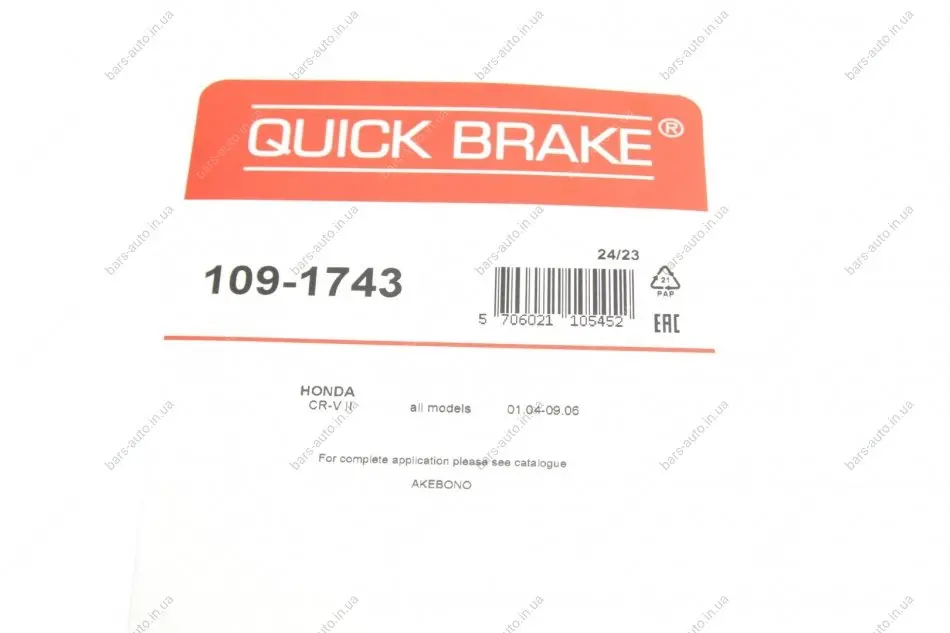 Планка супорта (переднього) прижимна (к-кт) Honda CR-V 01-07 (Akebono) QUICK BRAKE 1091743