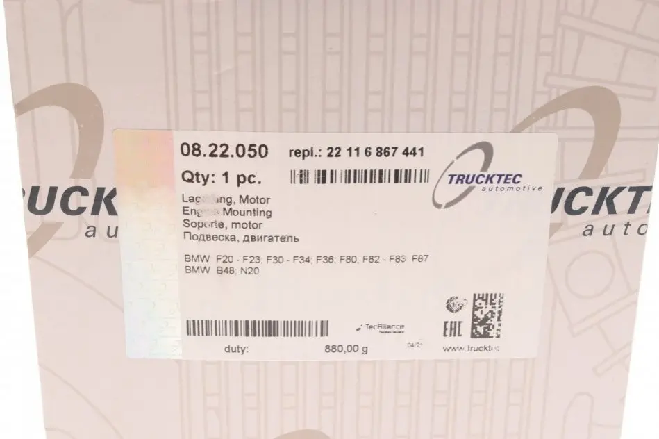 Подушка двигуна (L) BMW 3 (F30/F80/G20)/5 (F10/G30/G90)/7 (G11/G12)/X5 (F15/F85) 11- TRUCKTEC 08.22.050