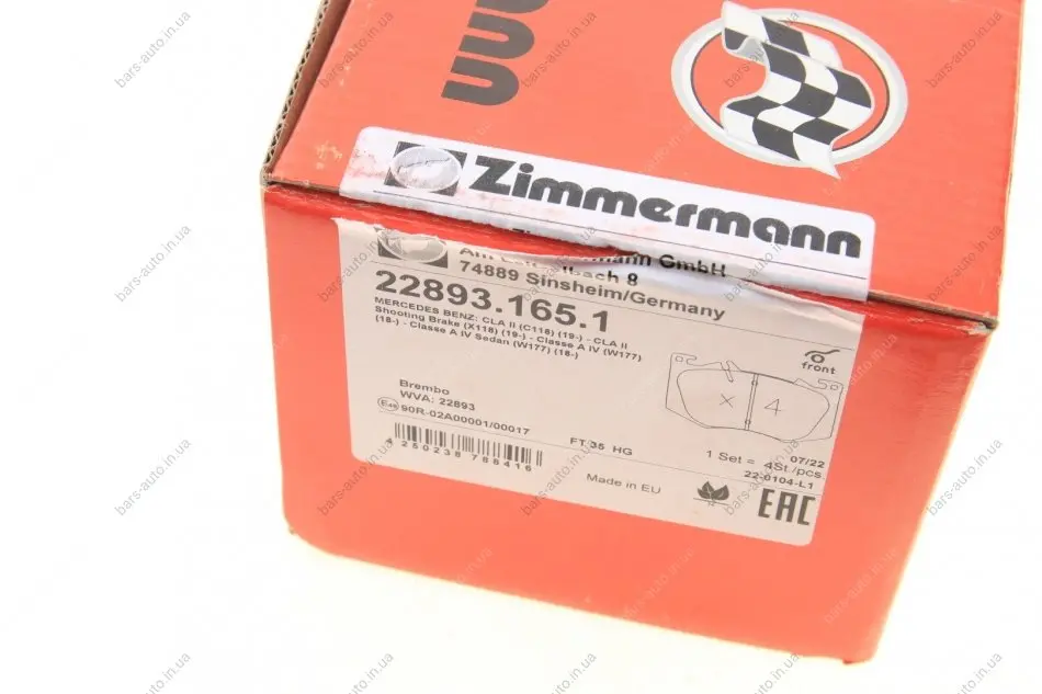 Комплект гальмівних колодок ZIMMERMANN 22893.165.1